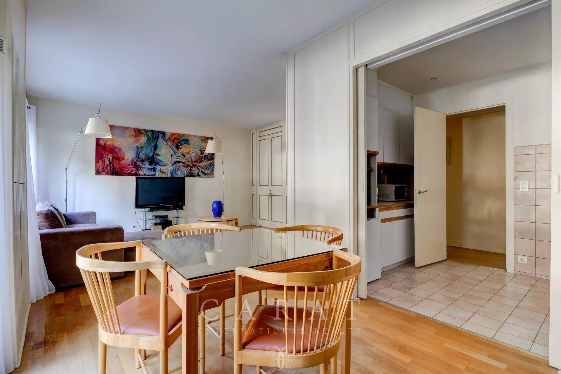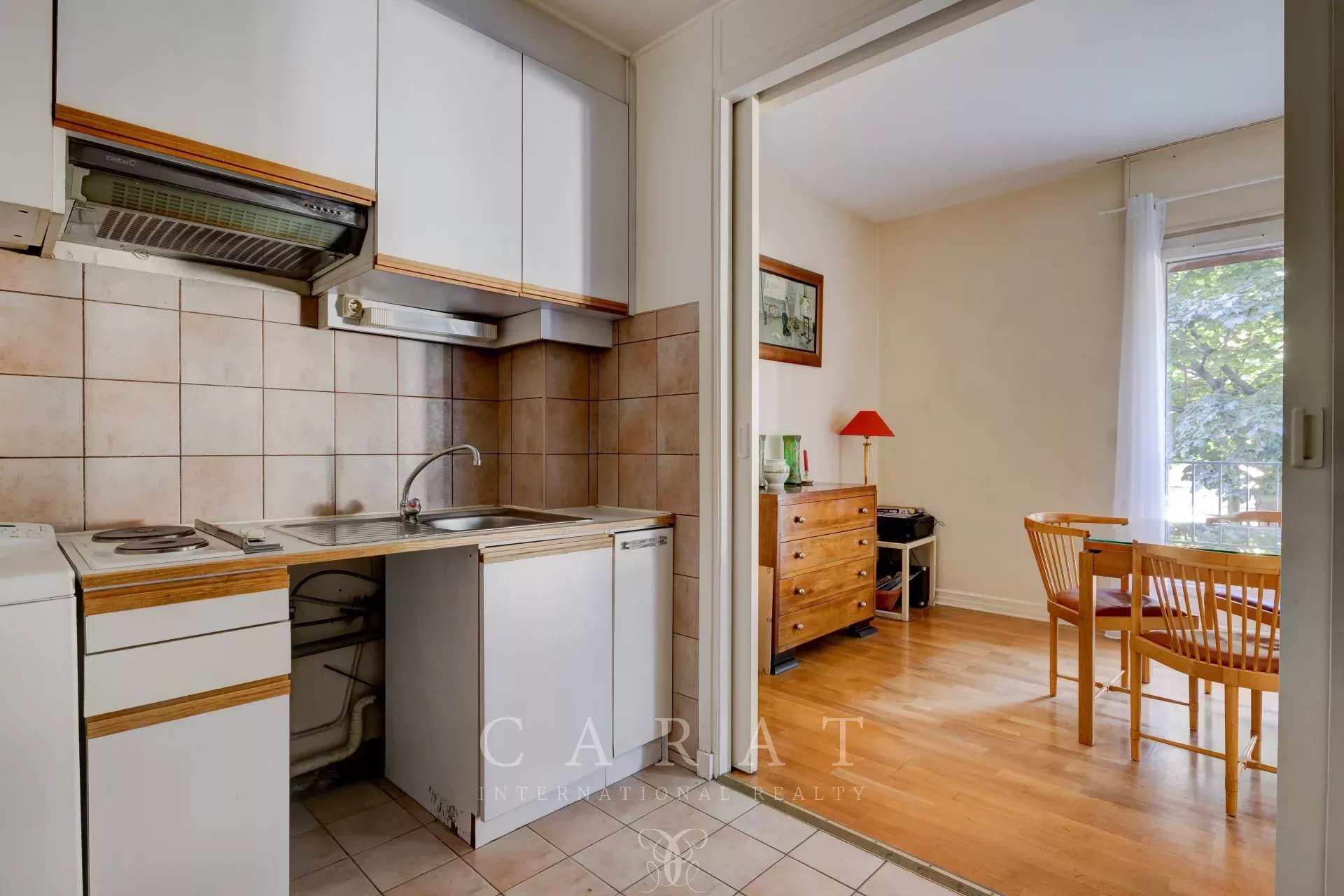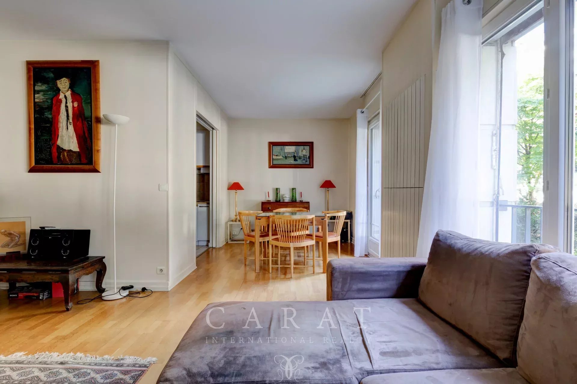 Idéalement placé dans une rue calme et dans un immeuble de grand standing, avec gardien et ascenseur, appartement au premier étage, d'une superficie de 66 m2 composé d'une entrée avec placard, vaste séjour de 27 m2 avec deux fenêtres exposé sud-ouest, cuisine aménagée (possible US), dégagement avec placards, une grande chambre de 16m2, salle de douche avec toilettes.