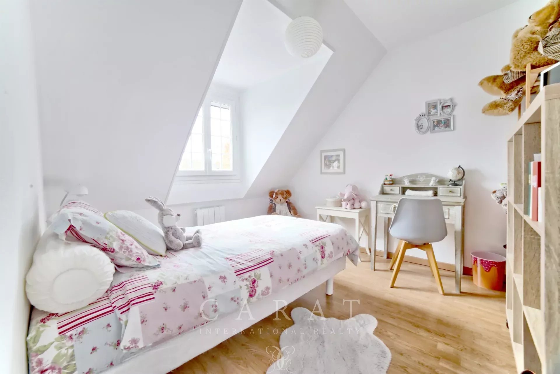 À l’étage, un palier dessert trois chambres confortables ainsi qu’une salle de bains avec toilettes. Les combles ne sont pas aménageables mais offrent un espace de rangement supplémentaire.